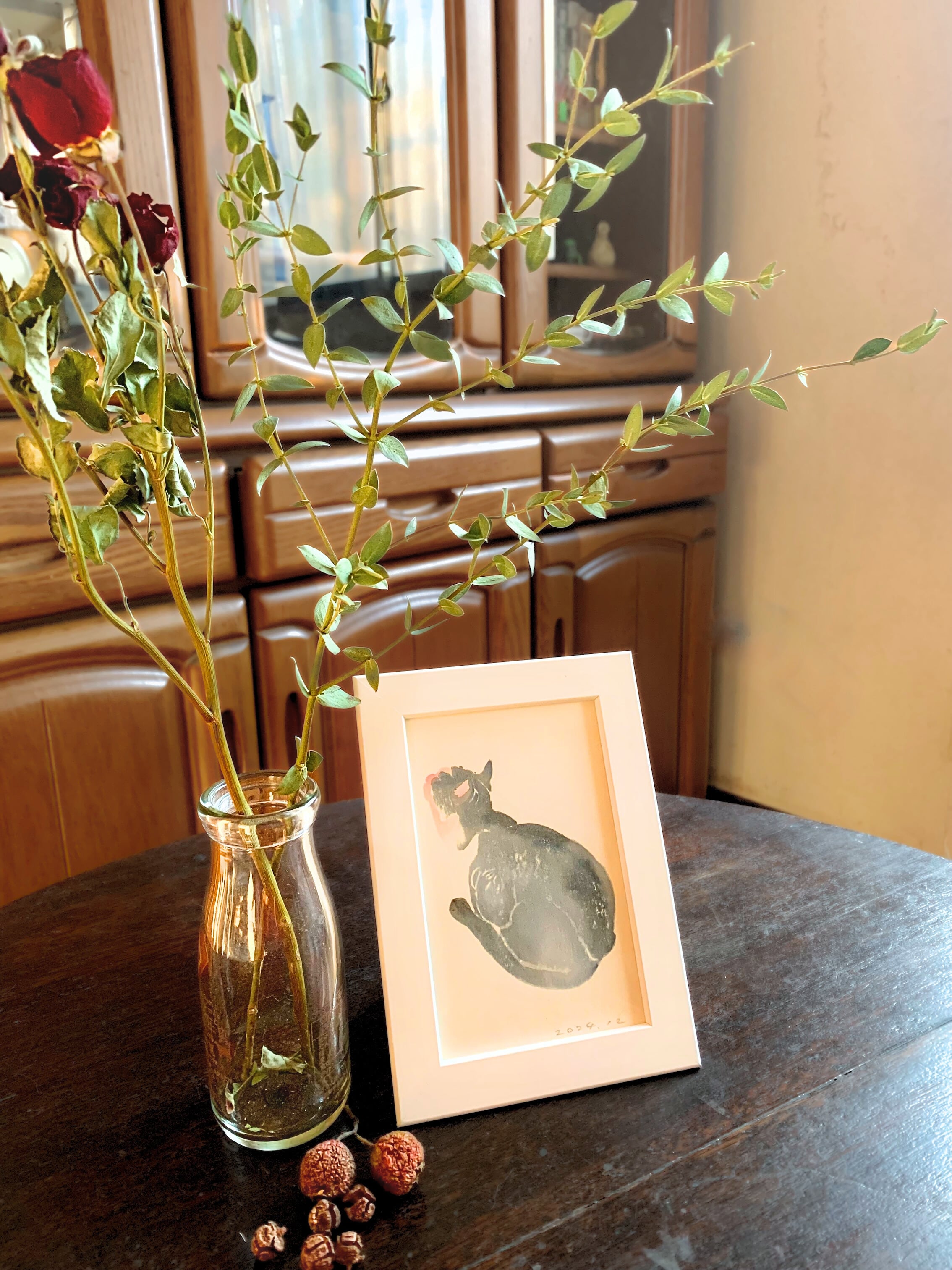 縁側でひなたぼっこをしている猫の姿に
